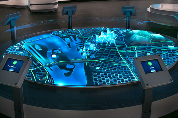 交互功能:參觀者可以通過觸摸屏選擇不同的規劃方案,查看其對城市的影響。